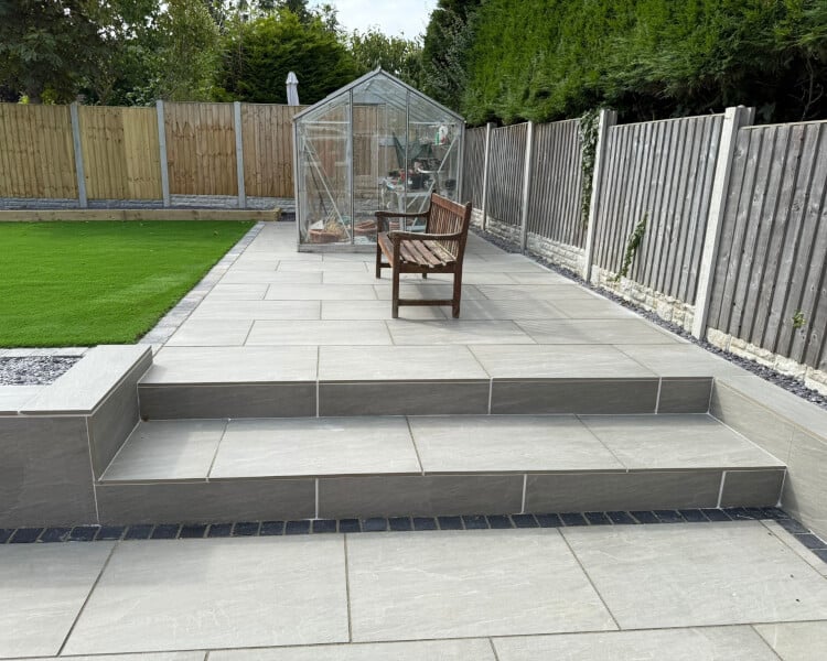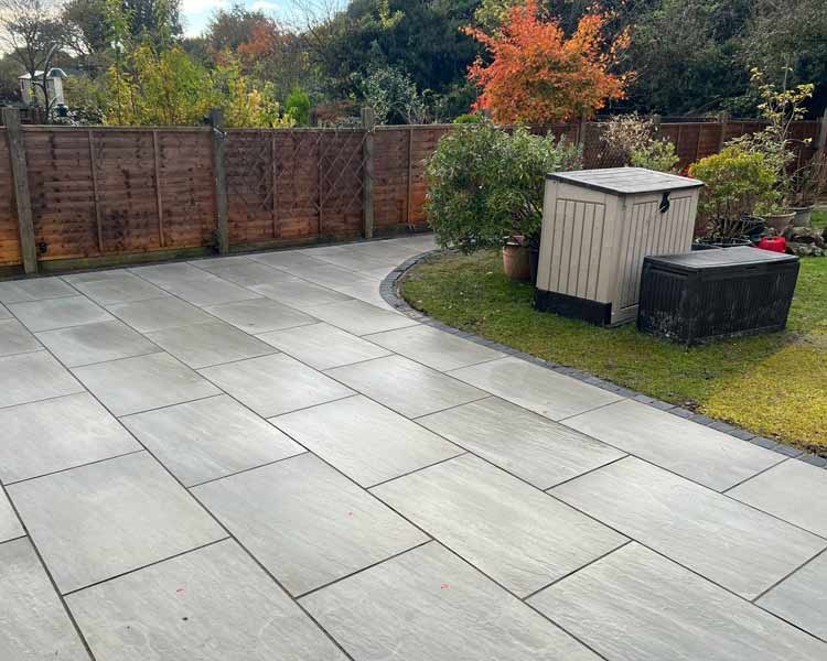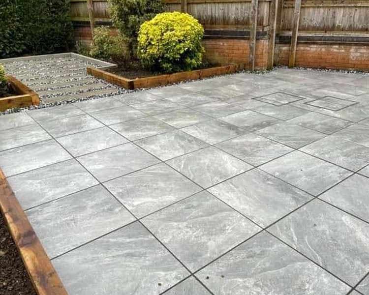 A sleek, non-porous surface that is perfect for modern garden spaces.